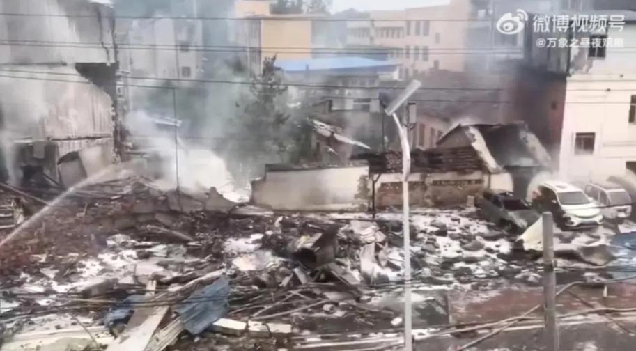 Video do Tân Hoa xã đăng tải cho thấy một vài ngôi nhà bốc cháy. Các nhân viên cấp cứu đã lập tức đến hiện trường.