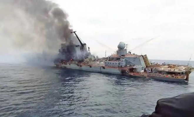 Soái hạm Moskva của Nga chìm ở Biển Đen. Ảnh: TWITTER