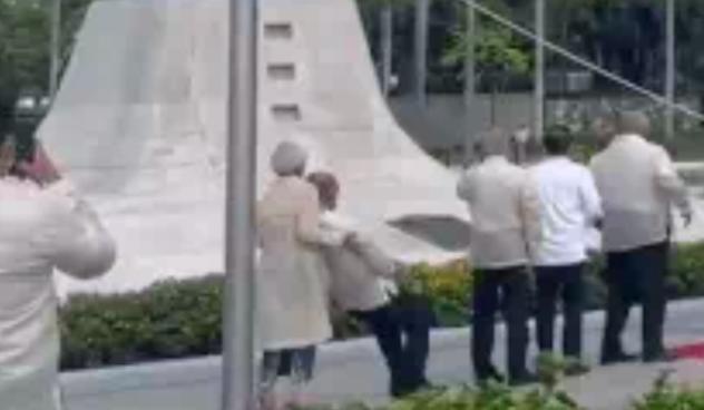 Hình ảnh từ buổi lễ cho thấy Bộ trưởng Lorenzana ngã về phía sau và được đưa lên xe cấp cứu.