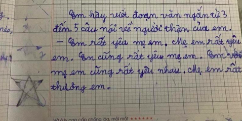 5 câu nói về người thân là 5 câu bày tỏ t́nh yêu thương với mẹ của em học sinh khiến dân mạng không khỏi thích thú.