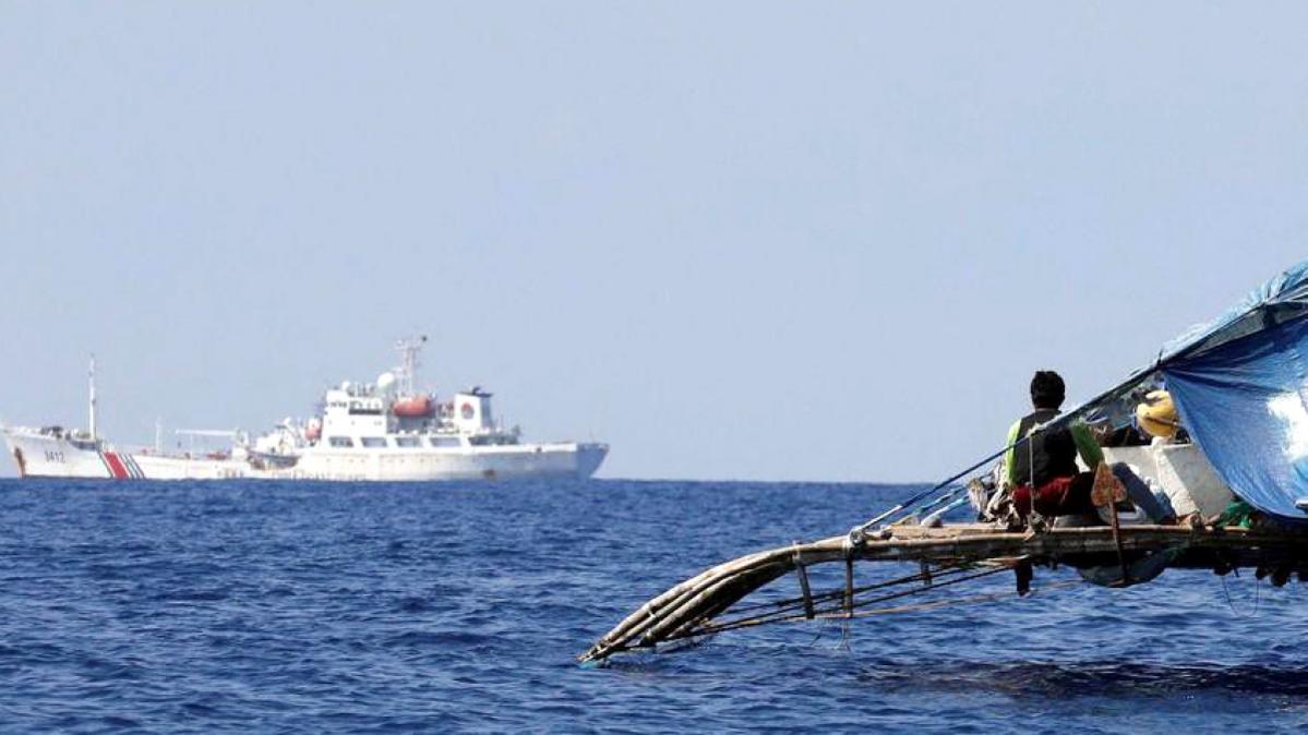 Ngư dân Philippines quan sát tàu Cảnh sát biển Trung Quốc tuần tra gần bãi cạn Scarborough. Ảnh: Reuters