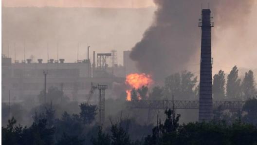 Đám cháy bốc lên tại nhà máy hóa chất Azot ở Sievierodonetsk. Ảnh: Sputnik.