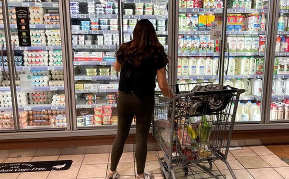 Một khách hàng mua sắm trong siêu thị khi lạm phát gia tăng ảnh hưởng đến giá tiêu dùng ở TP Los Angeles, bang California - Mỹ hôm 13-6. Ảnh: REUTERS