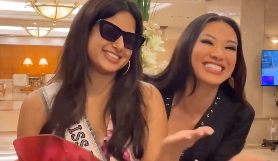 Harnaaz Sandhu vẫy tay, nói câu "Xin chào Việt Nam". Cô nói thêm: "Tôi vui vì cuối cùng cũng có mặt ở đất nước các bạn". Trên Instagram có 4,6 triệu người theo dõi, mỹ nhân liên tục đăng tải khoảnh khắc được fan Việt chào đón. Kim Duyên - người đẹp thi Miss Universe cùng năm với Harnaaz Sandhu - ôm hôn khi gặp lại bạn cũ.