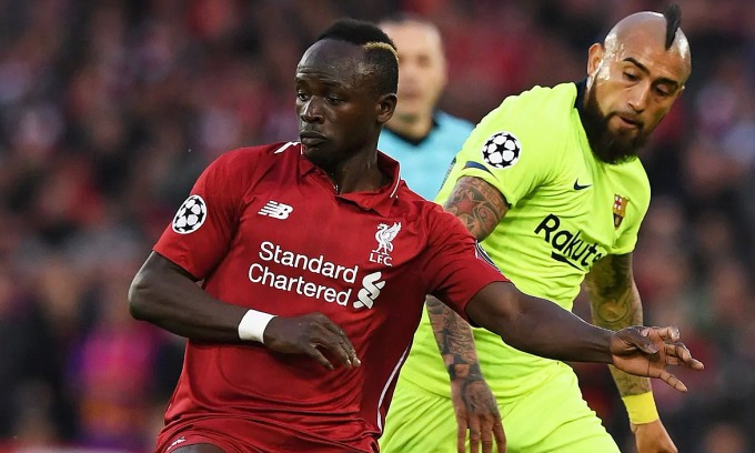 Mane tranh bóng với Arturo Vidal ở bán kết lượt về Champions League ngày 7/5/2019 tại Anfield, Liverpool, Anh. Ảnh: AP