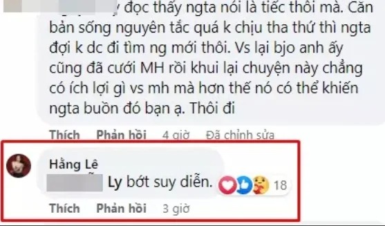 Trước lời lẽ gay gắt, Minh Hằng lập tức ra mặt phản hồi. Cô dằn mặt: "Bớt suy diễn". Cư dân mạng thả nhiều "like", icon trái tim như một cách thể hiện sự đồng tình với nữ ca sĩ.