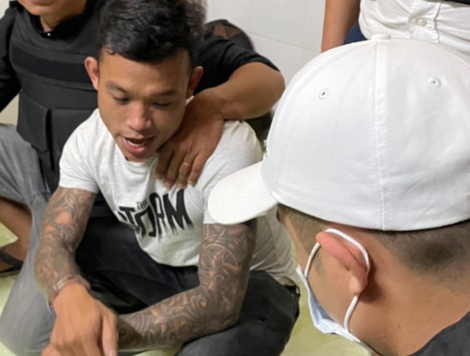 Trinh sát kể, lúc này phòng các nghi can vẫn sáng đèn, Thuận đắp chăn phủ nửa người, tay lăm lăm khẩu súng ngắn. Nghe tiếng động, Thành mở hé cửa nghe ngóng xung quanh liền bị cảnh sát lôi ra ngoài, khống chế. Thuận vội vùng dậy khoá trái cửa, cố thủ.