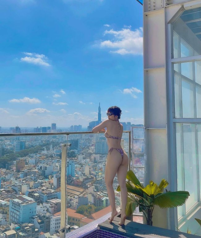 Cô thường xuyên khoe dáng với đồ bơi nhỏ, khoe trọn hình thể không góc chết.