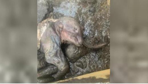 Xác voi ma mút lông xoăn con được khai quật ở Yukon, Canada. Ảnh: Yukon goverment and Trʼondëk Hwëchʼin.