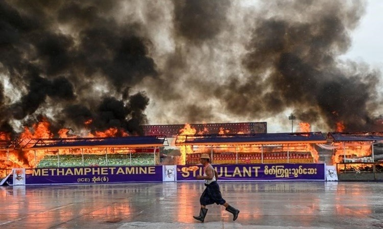 Giới chức Myanmar ngày 26/6 thông báo đã đốt bỏ lượng ma túy trị giá hơn nửa tỷ USD nhân Ngày Thế giới Phòng chống Ma túy.