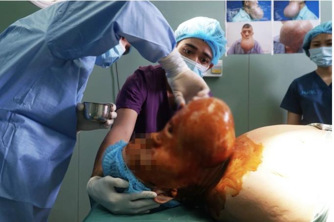 Dù vậy nhìn cảnh khối u to bằng cái đầu sắp "nổ tung", khiến bệnh nhân ăn uống vô cùng khó khăn, bất lực vì cái nghèo và đang dần lâm nguy, các bác sĩ đã quyết tâm thực hiện và thành công.