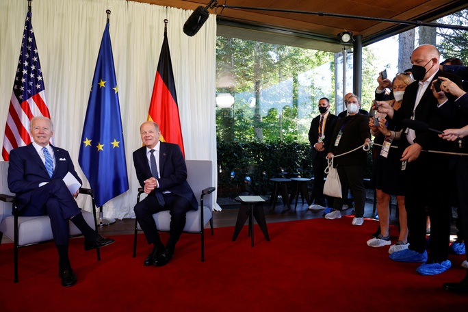 Thủ tướng Đức Olaf Scholz (phải) gặp gỡ song phương với Tổng thống Mỹ Joe Biden hôm 26-6, trước thềm thượng đỉnh G7 Ảnh: REUTERS