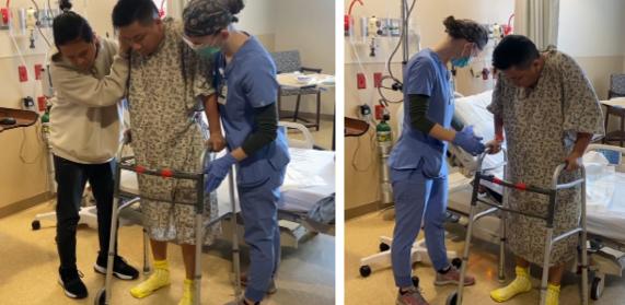 Sau đoạn chia sẻ một chút với người hâm mộ, Khoa Pug đã xuống giường và bắt đầu tập đi trên đôi chân mới. Tuy nhiên, những bước đi đầu tiên của anh chàng khá khó khăn, anh phải nhờ hoàn toàn đến dụng cụ hỗ trợ và sự giúp đỡ của bác sĩ vật lý trị liệu. Trong quá trình di chuyển, Khoa Pug liên tục nhăn nhó vì đau đớn và phải trở về giường bệnh nằm để có thể nghỉ ngơi.