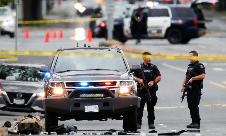 Hai nghi phạm có vũ trang và mặc áo chống đạn hôm 28/6 xông vào ngân hàng Montreal ở Saanich, tỉnh British Columbia, tây nam Canada. Khi rời khỏi ngân hàng, nhóm cướp đối đầu với các sĩ quan Sở cảnh sát Saanich và cuộc đấu súng bắt đầu.