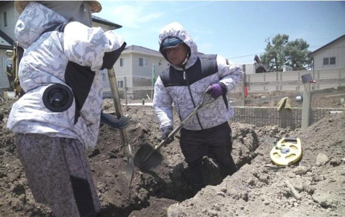 Gia đình theo nghề sửa ống nước đã ở ngoài trời từ 8h. Đến 11h chiều 1/7, nhiệt độ tại công trường xây dựng ở Isezaki dao động quanh mức 42 độ C.