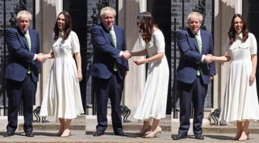 Sự việc xảy ra khi ông Johnson đón bà Ardern tới thăm bên ngoài dinh thủ tướng tại phố Downing. Khi hai người tạo dáng để phóng viên chụp ảnh, ông Johnson nắm tay bà Ardern ít nhất 5 giây và liên tục lắc mạnh, thậm chí còn kéo tay đối phương về mình.