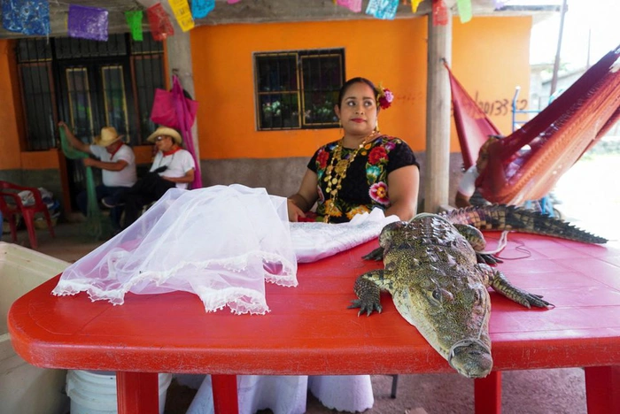 Thị trưởng San Pedro Huamelula, Victor Hugo Sosa, đã hơn một lần trong lễ cưới hôm 30/6, cúi xuống đặt đôi môi của mình lên mõm của con cá sấu nhỏ đang bị buộc bằng dây, có lẽ để tránh những cú đớp không mong muốn.
