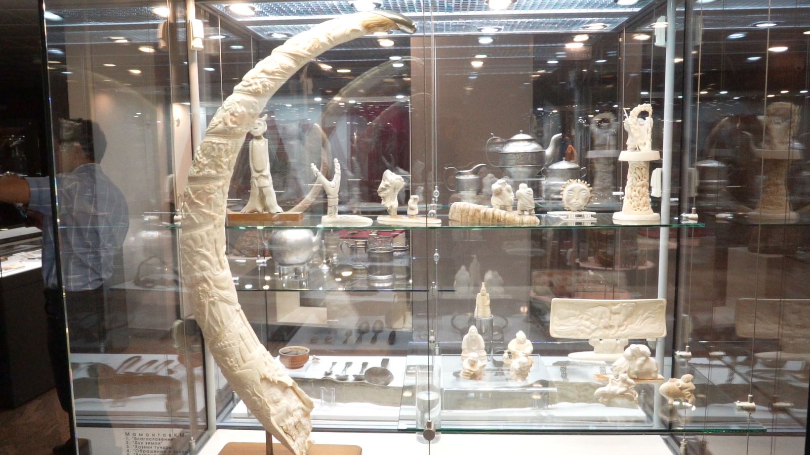 Yakutia cũng nổi tiếng là nơi khai thác ngà voi ma mút. Khu vực này trước kia từng là trung tâm của hệ động vật voi ma mút thế giới. Tại đây, hơn 90% số ngà voi ma mút trên hành tinh được khai thác. Ngà voi ma mút được ví như “vàng trắng” của CH Sakha. Trong triển lãm, bạn có thể thấy những chiếc ngà voi ma mút được chạm khắc hay vô số đồ vật tinh xảo làm từ ngà voi ma mút.