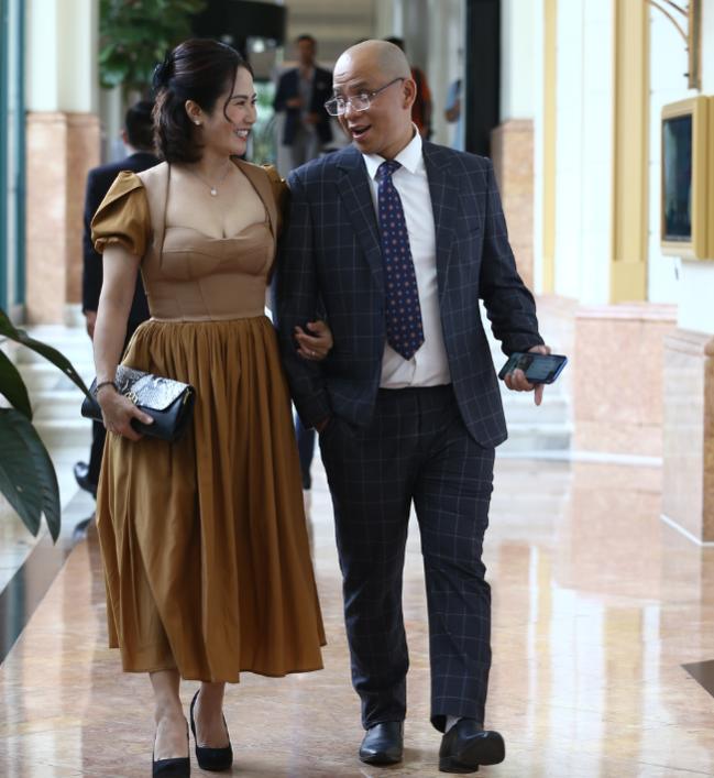 Cắt ngang lời bà xã, diễn viên Anh Tuấn hài hước cho biết: “Tôi xin đính chính thêm là vợ chồng tôi có nhiều khi phải bàn với nhau, nhưng đa phần là bàn gì thì bàn thôi, còn vợ tôi vẫn quyết theo ý của cô ấy”.