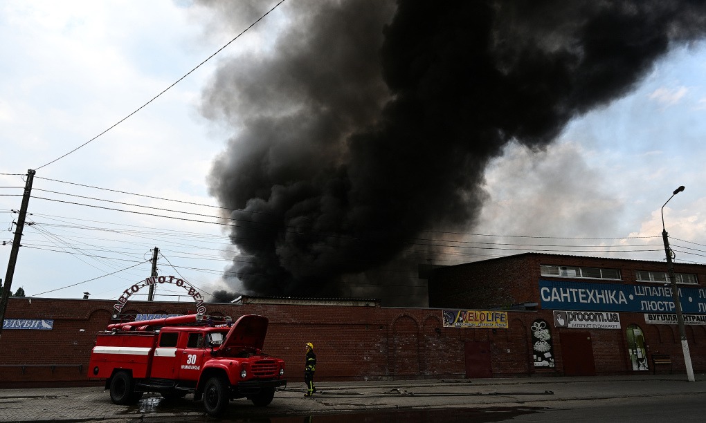 Khói đen bốc lên sau pháo kích ở khu chợ trung tâm thành phố Sloviansk, tỉnh Donetsk, miền đông Ukraine hôm 5/7. Ảnh: AFP.