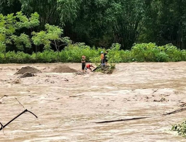 Chiều 5/7, khi đang xúc cát bên bờ suối ở thị trấn Pác Miầu, huyện Bảo Lâm, bốn người bị lũ cuốn mất tích.