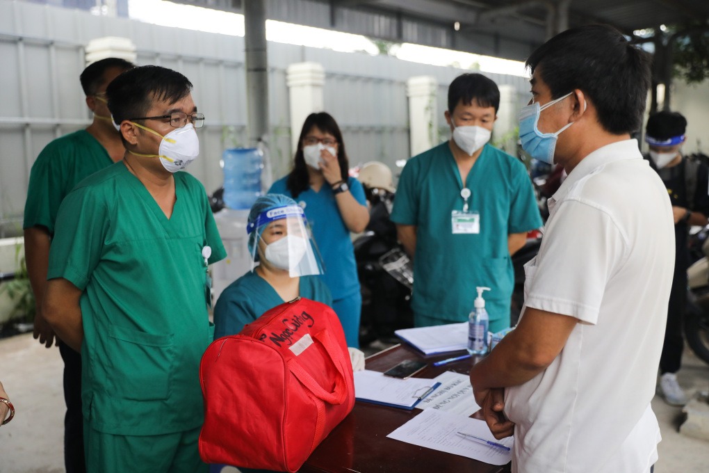 Nhân viên y tế trả kỷ vật của người đã mất vì Covid-19 cho gia đình, tháng 9/2021. Ảnh: Như Quỳnh