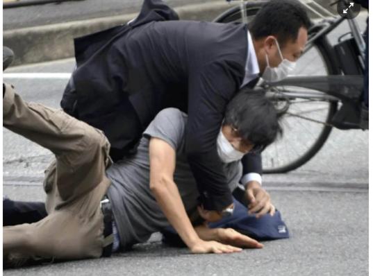 Nghi phạm Tetsuya Yamagami đã bị bắt giữ ngay sau khi bắn cựu Thủ tướng Shinzo Abe bằng súng tự chế. Ảnh: AP.