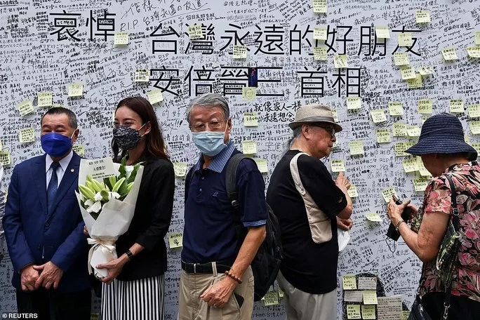 Người dân viết lời cầu nguyện trên bức tường tưởng niệm cố Thủ tướng Abe Shinzo. Ảnh: Reuters