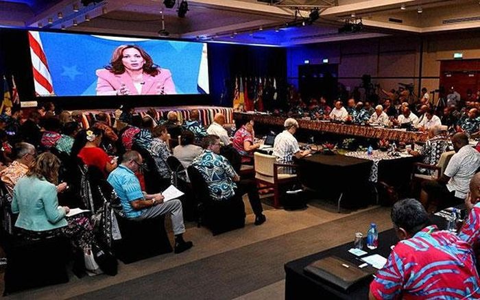"Chúng tôi nhận thấy trong những năm gần đây, các quốc đảo Thái Bình Dương đã không nhận được sự chú ý ngoại giao và ủng hộ xứng đáng. Vì vậy, hôm nay tôi nói thẳng với các bạn rằng chúng tôi sẽ thay đổi điều đó", Phó Tổng thống Mỹ Kamala Harris khẳng định trong bài phát biểu trực tuyến tại Diễn đàn Quốc đảo Thái Bình Dương (PIF) ở Fiji ngày 12-7.