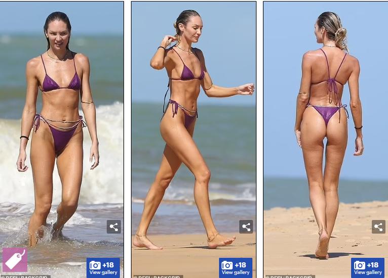 Candice Swanepoel diện bộ áo tắm 2 mảnh màu tím đậm tuyệt đẹp, tôn vóc dáng săn chắc đẹp như tượng tạc với chiều cao 1m77.