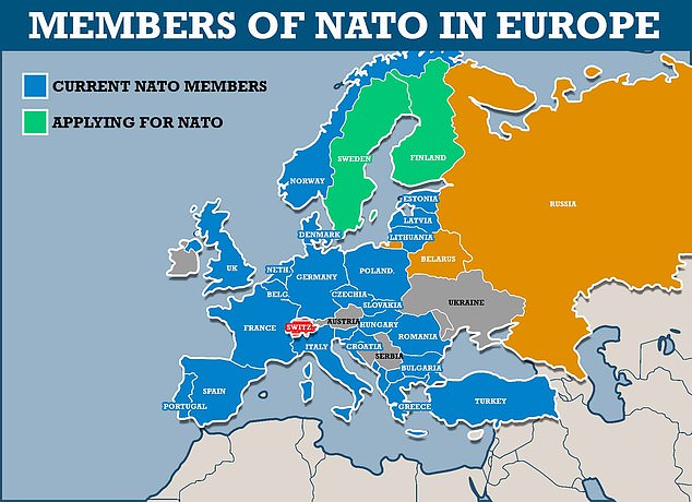 Thụy Sĩ nằm giữa các nước thành viên NATO.