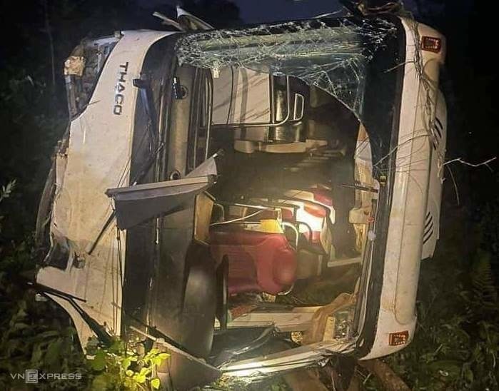 Xe khách 29 chỗ chở 28 người đi du lịch, khi đến xã Xuân Sơn, huyện Tân Sơn, thì lao xuống vực khiến ba người chết, 10 người bị thương.