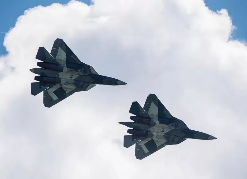 Một cặp máy bay Su-34 4 của Nga tham gia chuyến bay triển lãm vào ngày 18 tháng 7 năm 2017 tại triển lãm hàng không thường niên MAKS 2017 ở Zhukovsky, Nga. Ảnh Getty