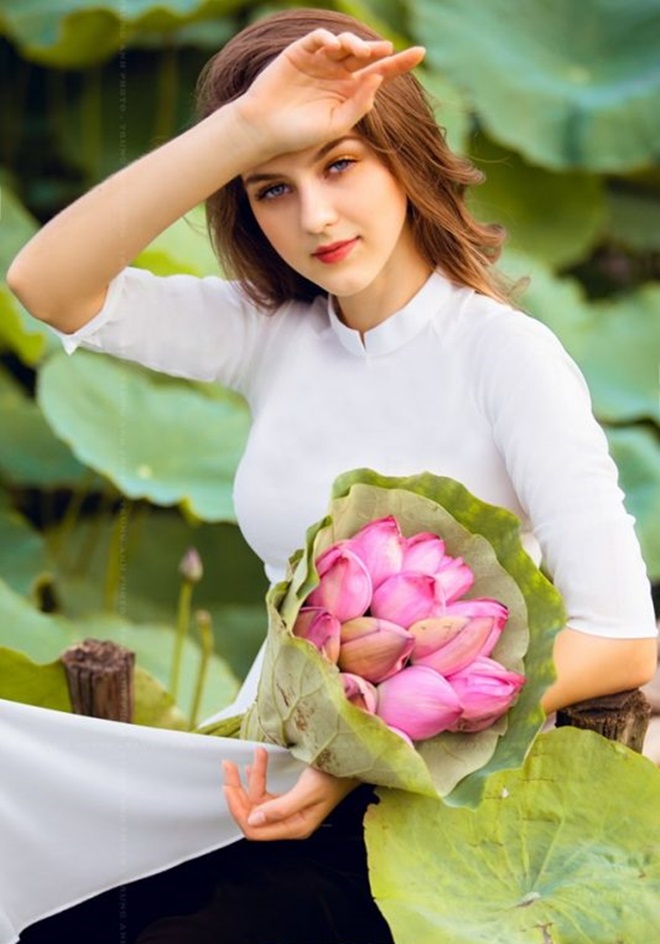 Người đẹp ngoại quốc diện áo dài Việt Nam.