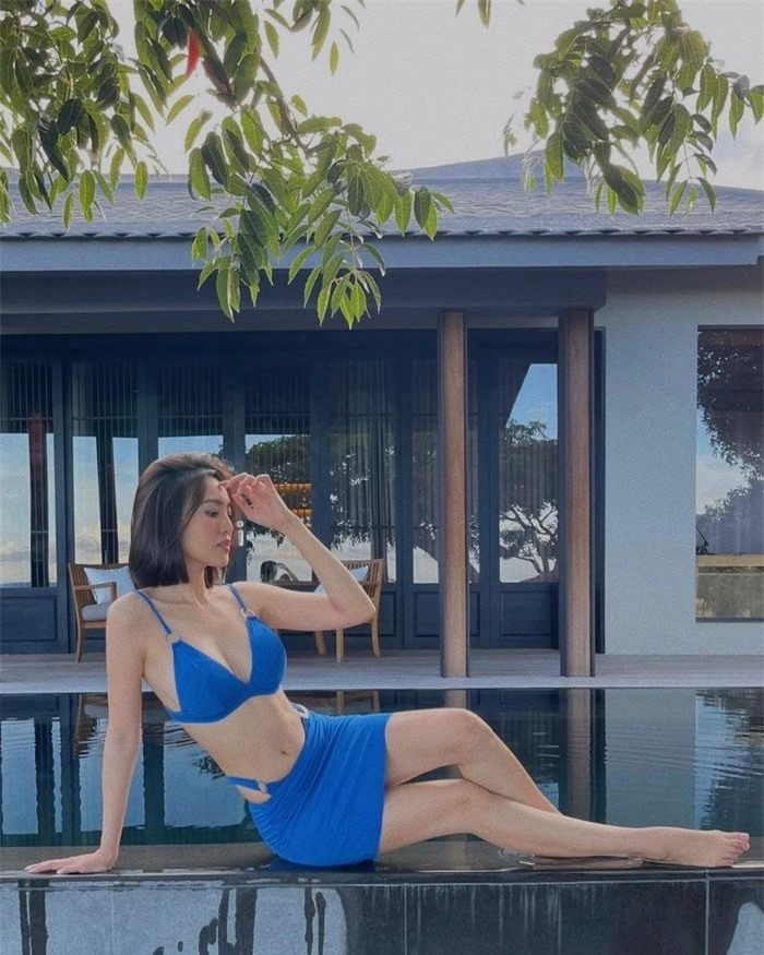 Ninh Dương Lan Ngọc cũng khởi động mùa hè bằng chuyến du lịch biển. Tại chuyến đi nghỉ dưỡng này, nữ diễn viên Cua lại vợ bầu đã chọn set đồ tắm sắc xanh nổi bật với phần thiết kế không quá táo bạo nhưng vẫn cực kỳ hút mắt. Người đẹp diện bra kết hợp với chân váy cạp trễ.