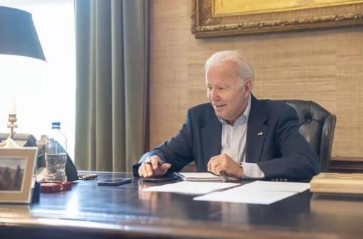 Bức ảnh Tổng thống Joe Biden tươi cười trong lúc làm việc dù đang mắc Covid-19 vừa được đăng tải trên trang Twitter của ông. Ảnh: Twitter