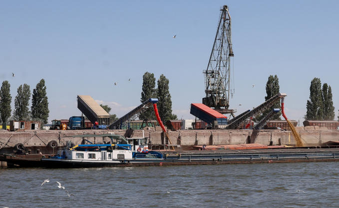 Ngũ cốc được chuyển lên sà lan tại cảng Reni, tỉnh Odessa, Ukraine ngày 21/7. Ảnh: Reuters.