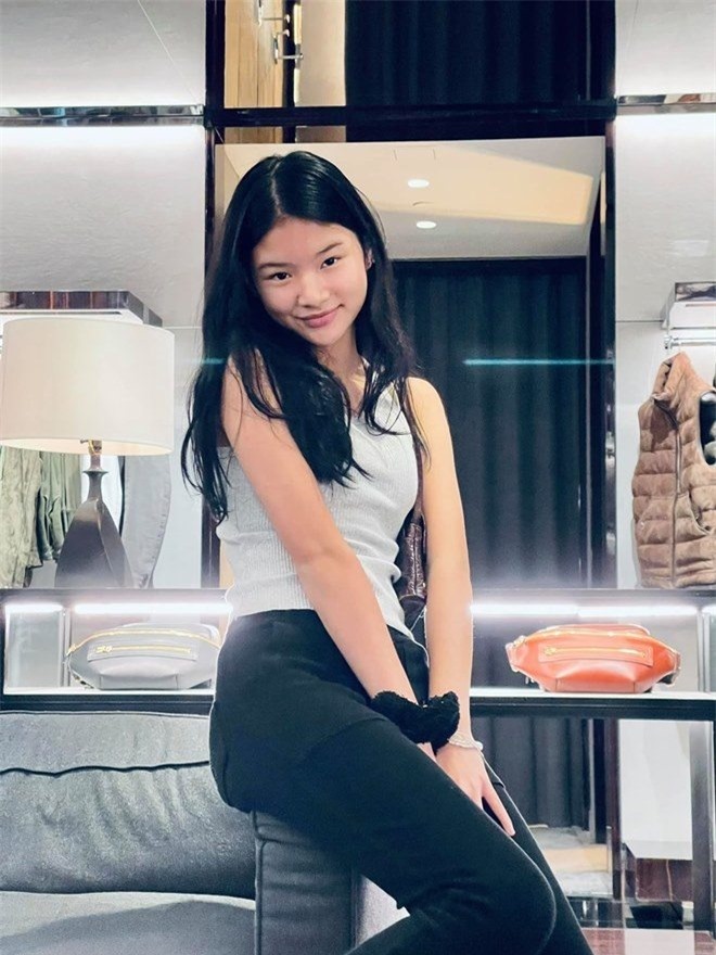 Trong ảnh, con gái Trần Bảo Sơn mặc áo phông, quần jean và đi giày thể thao thoải mái. Cô gái có khuôn mặt tròn trịa, các đường nét hài hòa sắc sảo và mái tóc dài dày. Ngoài ra, dù chỉ mới 13 tuổi nhưng chiều cao và đôi chân dài của cô bé đã rất đáng nể.