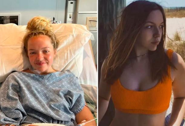 Hình ảnh cô Addison Bethea tại bệnh viện sau khi bị cá mập tấn công (bên trái) và trước khi bị cá mập tấn công. Ảnh: New York Post.