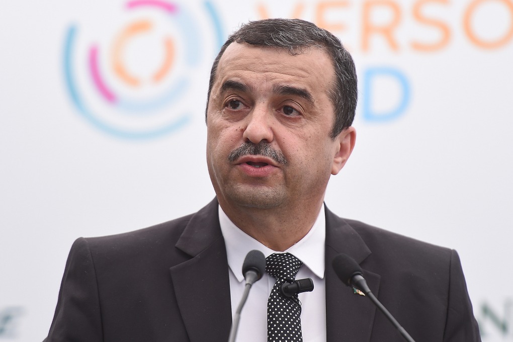 Bộ trưởng Năng lượng Algeria Mohamed Arkab phát biểu tại Sorrento, Naples, Italy, ngày 13/5. Ảnh: AFP.