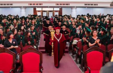Tại Việt Nam, lần đầu tiên Đại học Kinh tế (Đại học Quốc gia Hà Nội) thực hiện nghi thức Hiệu trưởng cầm quyền trượng trong lễ tốt nghiệp diễn ra tối 29/07. Theo đó, Hiệu trưởng nhà trường mặc áo nhung, đội mũ màu đỏ, cầm quyền trượng, đeo vòng cổ, dẫn đầu các thầy cô giáo của nhà trường. Cạnh đó, các thành viên trong ban nghi lễ cũng mặc áo nhung đỏ pha đen, đội mũ màu đen.