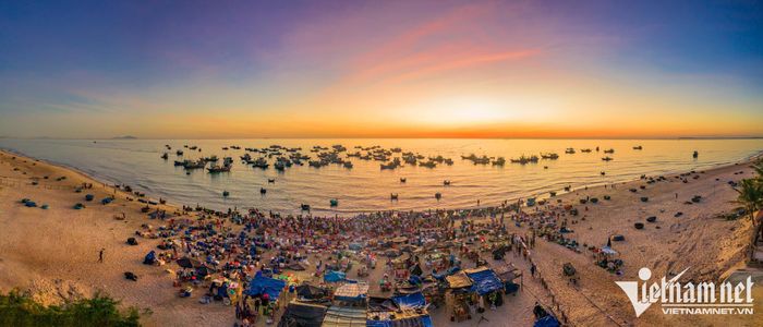 Khu chợ truyền thống Tam Tiến (Núi Thành, Quảng Nam) hoạt động ngay trên bãi biển, hiện lên vẻ đẹp nguyên sơ, dân dã.