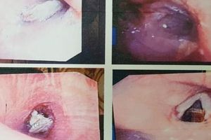 Gần 1 năm trước đó, ông T. ăn xương ống heo và bị sặc rồi xuất hiện các triệu chứng khạc đàm kéo dài, khò khè tái đi tái lại.
