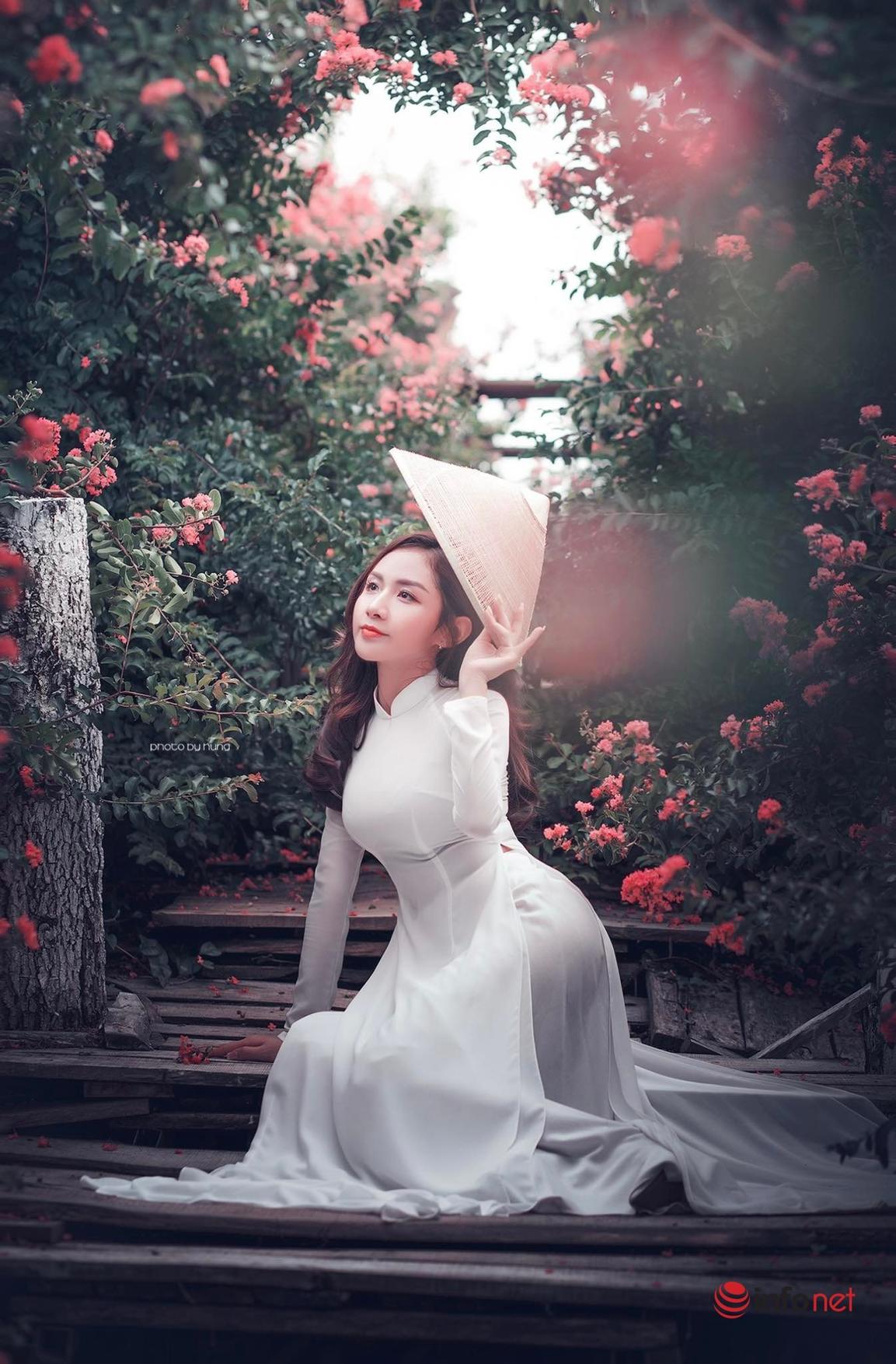 Mới đây cô giáo tiểu học này đã gây 'bão' mạng xã hội và được dân mạng ưu ái gọi là 'nàng thơ' khi diện áo dài trắng tinh khôi tạo dáng dịu dàng trong vườn hoa tường vi nở rộ.