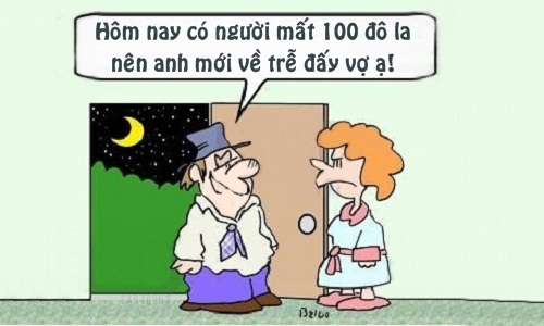 - Vậy là anh giúp bà ấy tìm tiền từ chiều đến giờ à? - cô vợ dịu giọng - Anh đúng là một người đàn ông tốt bụng.