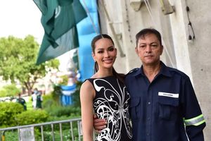 Old  Default Bố của Hoa hậu Hoàn vũ Thái Lan 2022 mặc quần áo lao công dự sự kiện của con gái