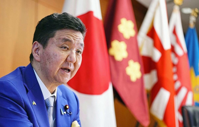 Bộ trưởng Quốc phòng Nhật Bản Nobuo Kishi trả lời phỏng vấn tại Tokyo hồi tháng 4. Ảnh: Kyodo.