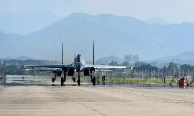 Tiêm kích Trung Quốc cất cánh tham gia diễn tập gần Đài Loan hôm 5/8. Ảnh: Reuters.