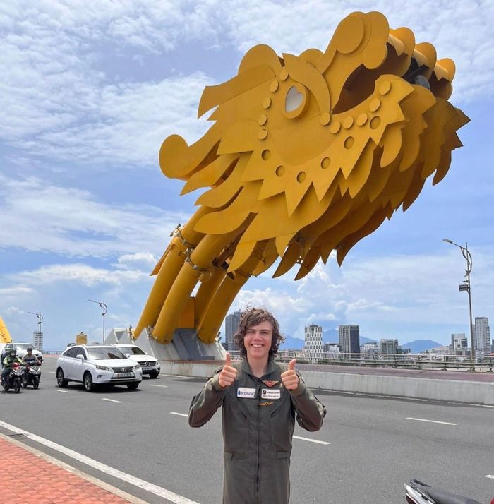 Rutherford chỉ có một ngày nghỉ ở thành phố biển của Việt Nam. Hình ảnh chàng trai check-in ở cầu Rồng được Đại sứ quán Anh tại Việt Nam chia sẻ khiến nhiều người thích thú.