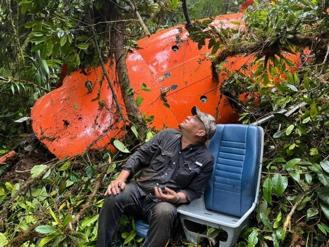 Dimitri Flores tại hiện trường rơi máy bay ở tây nam Panama ngày 11/8. Ảnh: Twitter/Dimitri Flores.